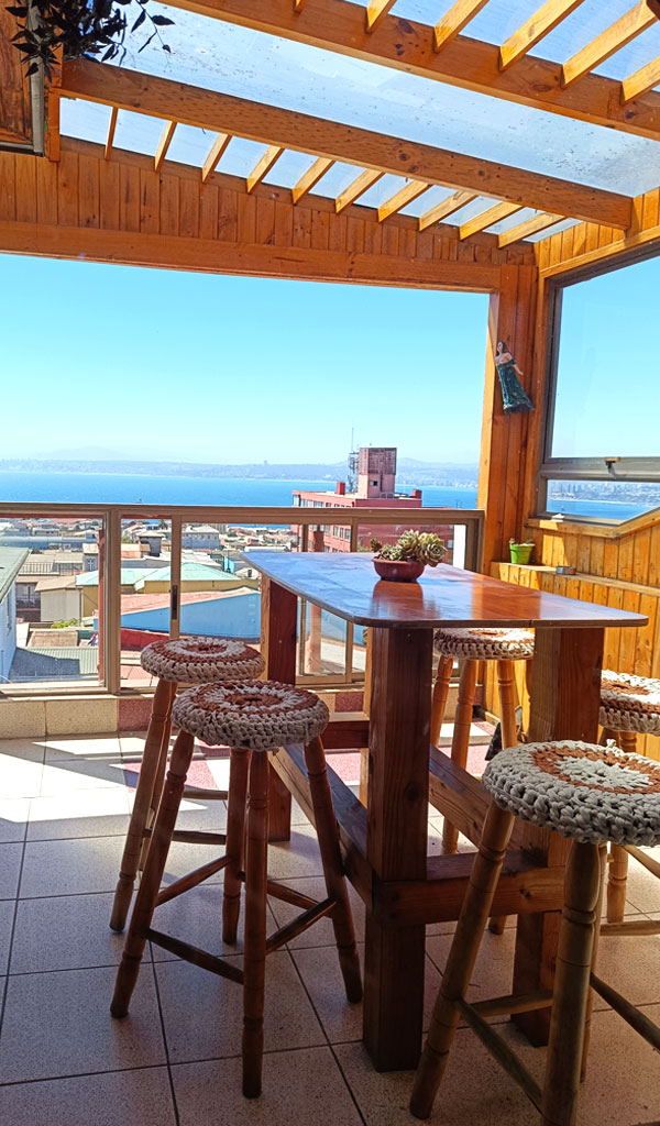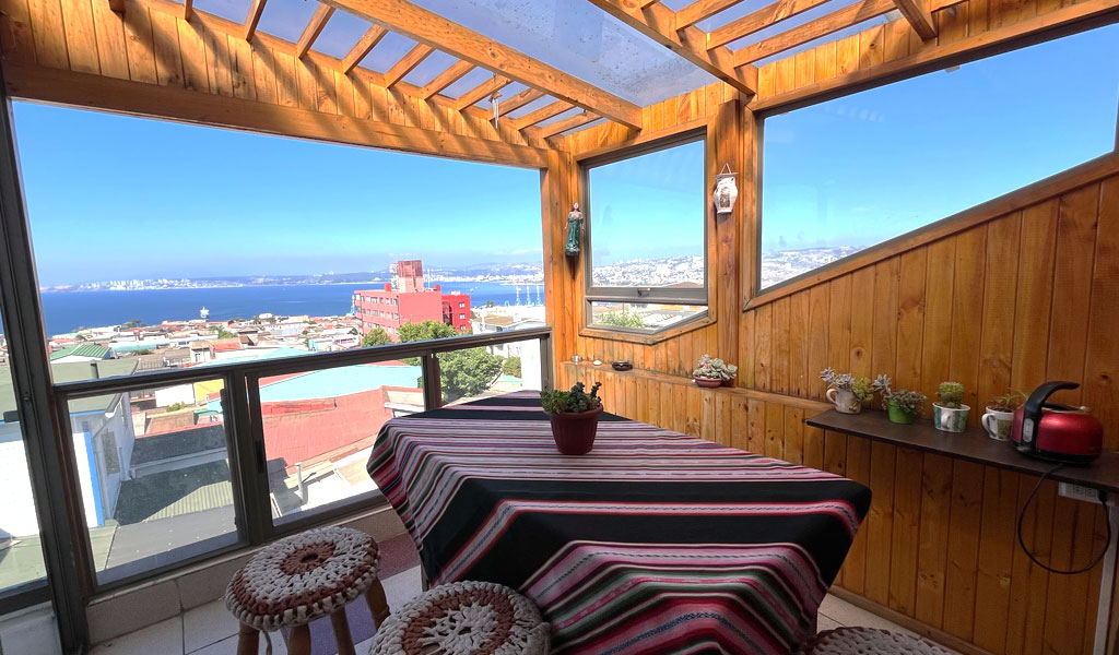 El Hostal Lala Porteña es una casona imponente que se encuentra en Playa Ancha con una vista panorámica a la ciudad, al puerto y hacia los cerros.