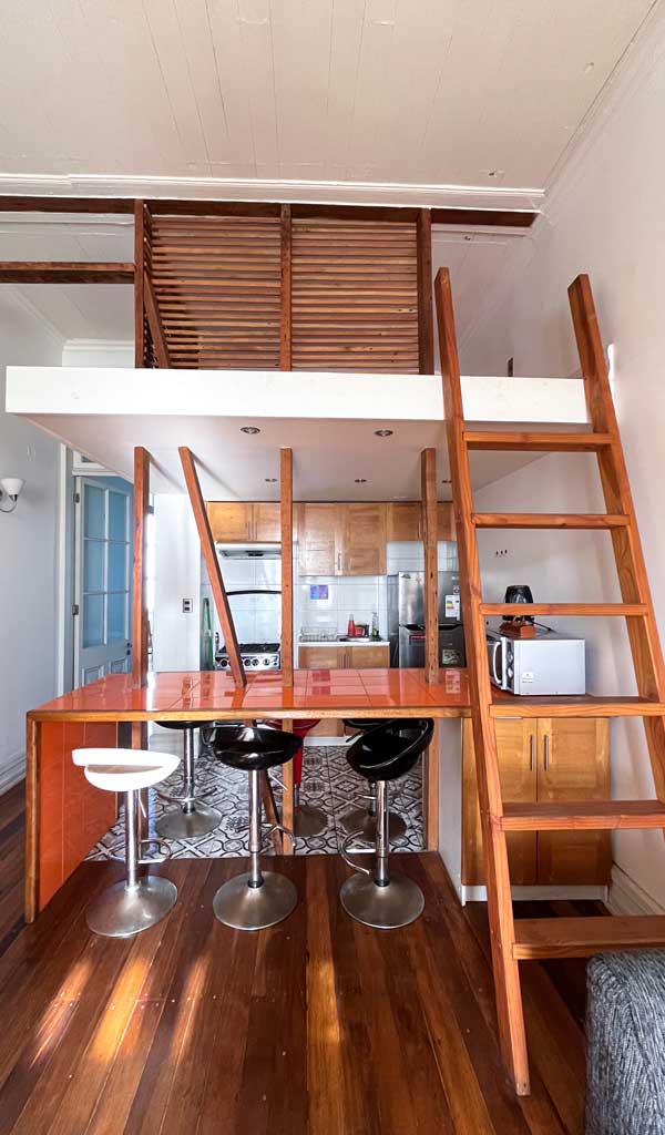 Loft Waddington es una restauración de inmueble de conservación histórica de 1910 pensado para alojamiento turístico, con loft dúplex refaccionados y un espacio tipo co‑work.